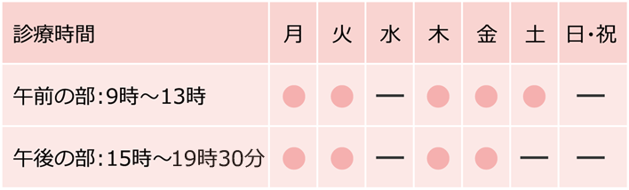 ※最終受付19:00 ※土曜日のみ12時30分までの受付となります クリニックのご案内